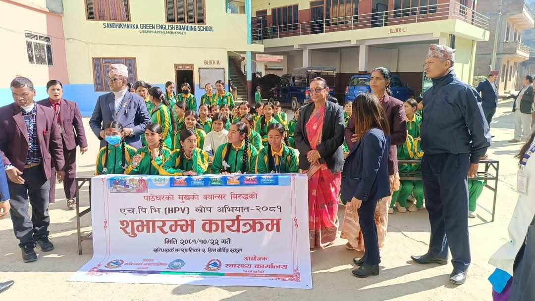 स्वास्थ्य कार्यालय अर्घाखाँचीले सन्धिखर्क स्थित सन्धिखर्क ग्रिन ईङलिस बोर्डिङ्ग स्कूलका छात्राहरुलाई एचपिभी खोप लगाएर एचपिभी खोप अभियान जिल्लामा सुरु गरेको स्वास्थ्य कार्यालय अर्घाखाँचीले जनाएको छ ।