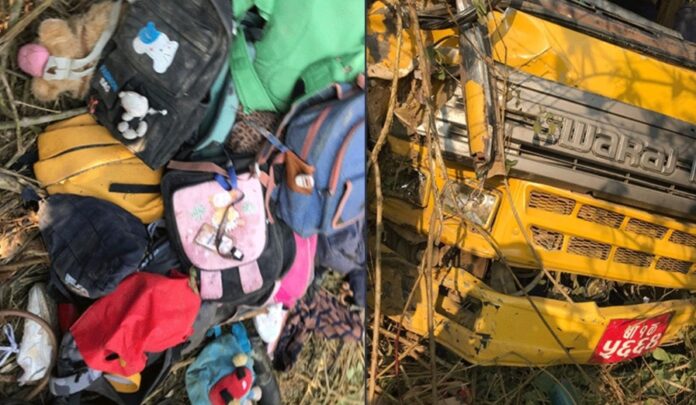 काठमाडौं — काठमाडौंको दक्षिणकाली नगरपालिका–४ मा आइतबार दिउँसो विद्यार्थी बोकेको बस गहिरो खोंचमा खस्दा दुई जनाको मृत्यु भएको छ भने ४१ जना घाइते भएका छन्।