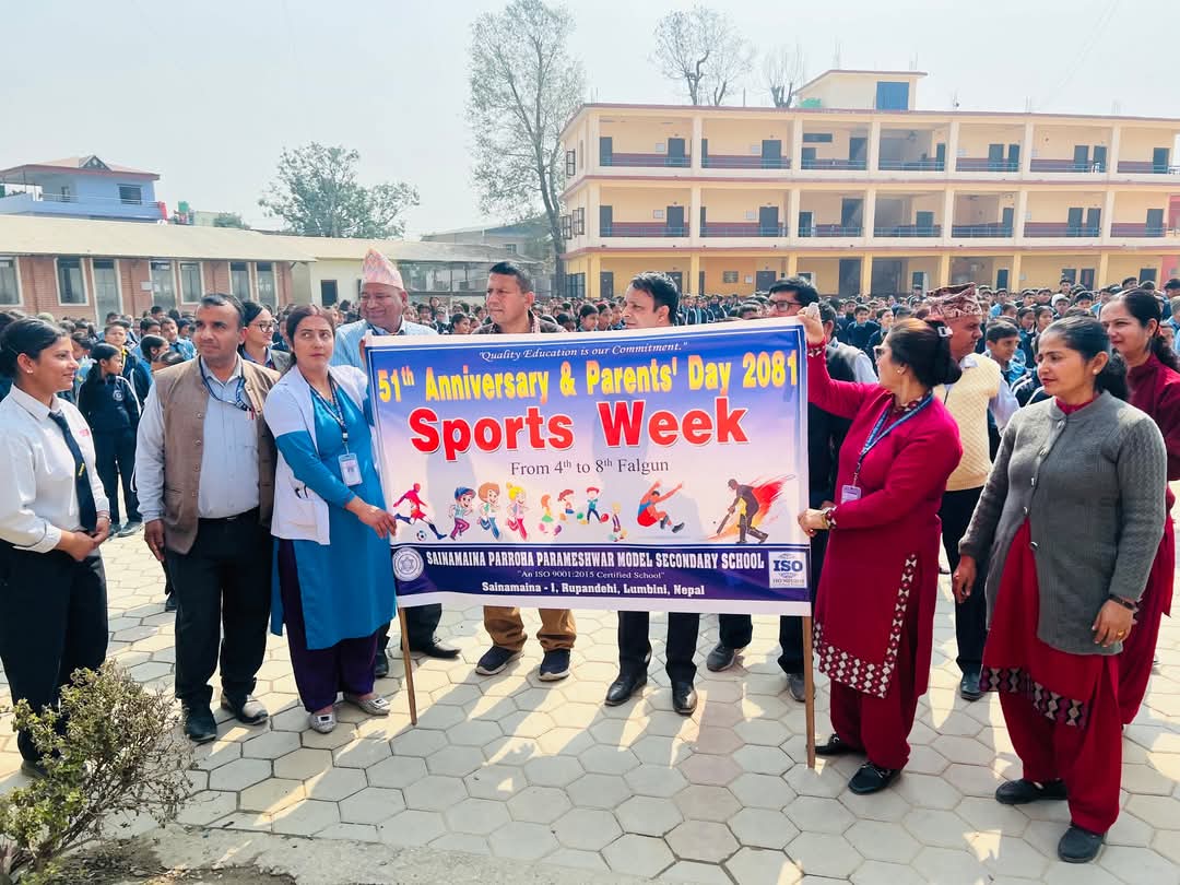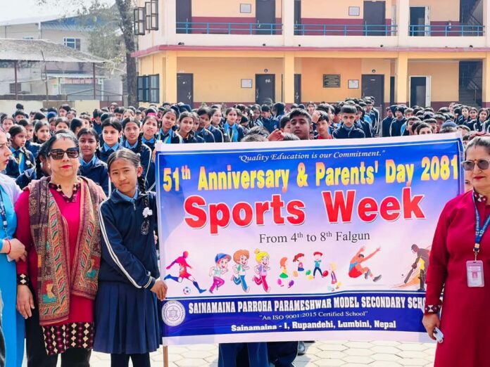 रुपन्देही – रुपन्देहीको सैनामैना पर्रोहा परमेश्वर नमुना माध्यमिक विद्यालयले आफ्नो ५१औं वार्षिकोत्सवलाई भव्य रूपमा मनाउने तयारी गरेको छ। विद्यालयले साताव्यापी अतिरिक्त क्रियाकलाप कार्यक्रम सञ्चालन गर्दै विद्यार्थीको प्रतिभा निखार्ने उद्देश्य राखेर विभिन्न कार्यक्रम सहित मनाउने योजना बनाएको छ ।