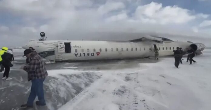 विमान अमेरिकाको मिनियापोलिसबाट टोरन्टो गएको हो। अवतरणको समयमा विमानको पखेटामा रहेका फ्ल्यापहरूले राम्रोसँग काम नगरेकोले विमान पल्टिएको जनाइएको छ।