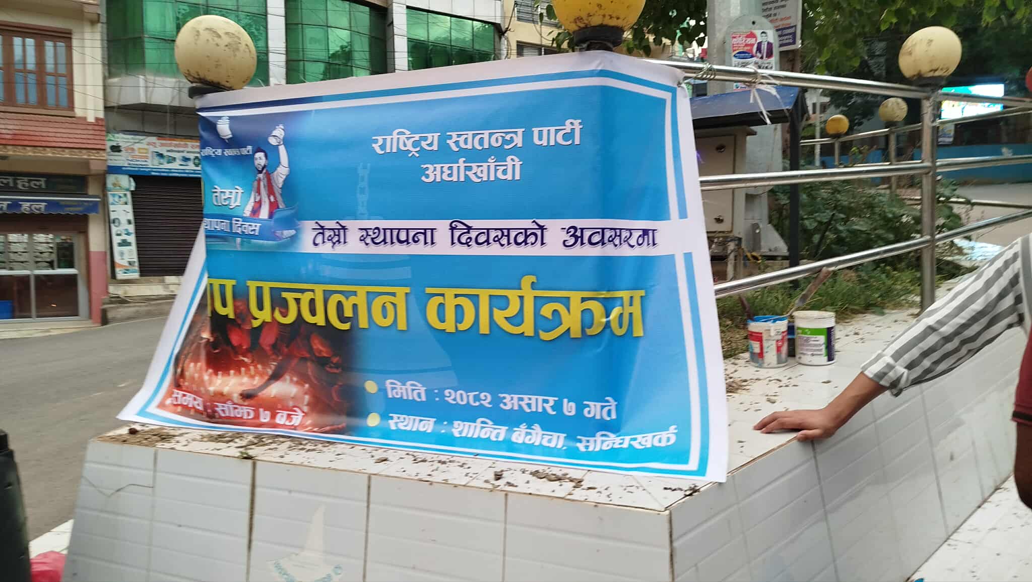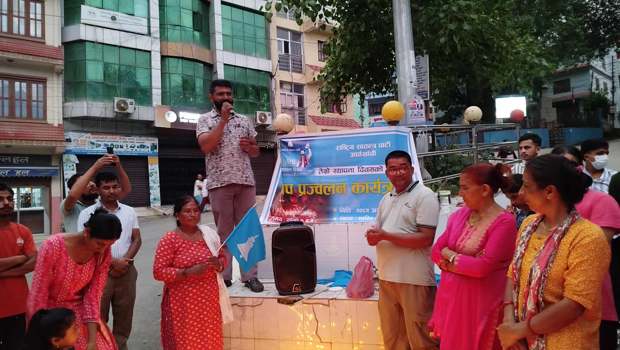 अर्घाखाँची – राष्ट्रिय स्वतन्त्र पार्टी अर्घाखाँचीले आज तेस्रो पार्टी स्थापना दिवसकाे अबसरमा सन्धिखर्ककाे शान्तिबगैचामा दिप प्रज्जवलन सहित मनाएकाे छ।
