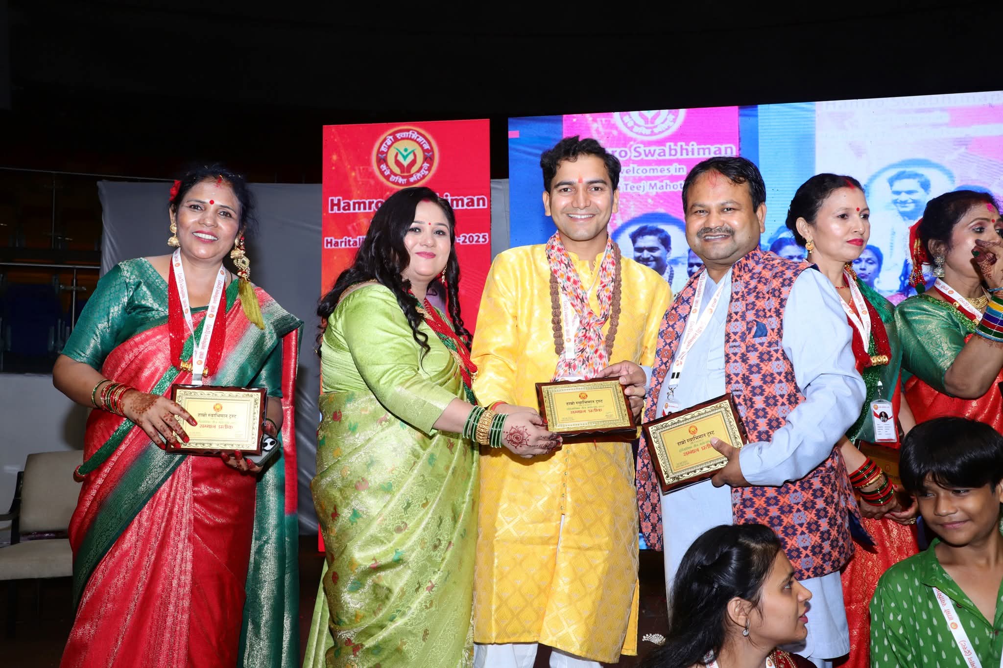 यस पटकको तीज महोत्सवमा विभिन्न क्षेत्रमा योगदान दिएका व्यक्तित्वहरूलाई ‘राष्ट्रिय सम्मान २०२५’ बाट सम्मान गरिएको थियो । नेपाली साहित्य पुरस्कार गद्यमा निरंकार थापा, पद्यमा रेवती रमण तिम्सिना, पत्रकारितामा प्रदीप रसाईलीलाई सम्मान गरियो भने गोरखाको गौरव किरण रसाईलीलाई लाइफ टाइम अचीभमेन्ट अवार्ड दिइयो । यस्तै समाजसेवामा सुशान्त बस्नेत, अस्मिता राई र धनकुमारी क्षेत्रीलाई पनि सम्मान गरियो । यी सबै सम्मानहरू प्रमुख अतिथि अशोक ठाकुर र विधायक अनिल शर्माको हातबाट प्रदान गरिएको थियो ।
