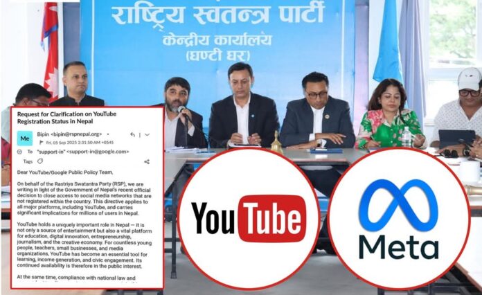 काठमाडौं -राष्ट्रिय स्वतन्त्र पार्टी (रास्वपा) ले मेटा र युट्युबलाई पत्र लेखेर नेपालमा दर्ताबारे जिज्ञासा राखेको हो ।