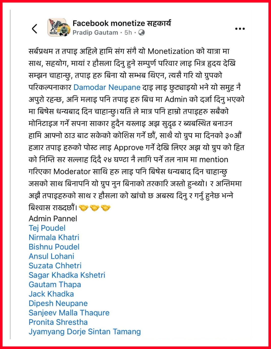 एक–आपसमा सहयोग गर्दै फेसबुकमा फलोअर्स र इङ्गेजमेन्ट बढाउने उद्देश्यले यो ग्रुप दामोदर न्यौपानेको परिकल्पनामा स्थापना गरिएको हो। फेसबुक मोनेटाइजेसनको क्षेत्रमा अत्यन्त सक्रिय रहेको यस ग्रुपले सामाजिक सञ्जाल प्रयोगकर्तालाई व्यवहारिक सहयोग पुर्याउँदै आएको ग्रुपका अर्का एडमिन प्रदीप गौतमले बताए।