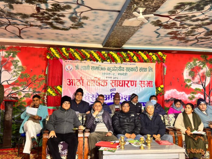 रुपन्देही । श्री लक्ष्मी सामाजिक बहुउद्देश्यीय सहकारी संस्था लिमिटेडको आठौं वार्षिक साधारण सभा भव्यताका साथ सम्पन्न भएको छ। बुटवल–१३ जितगढीस्थित साइनो पार्टी प्यालेसमा आयोजना गरिएको कार्यक्रममा अध्यक्ष खुबीराम आचार्य, प्रमुख अतिथि सहकारीका जेष्ठ सेयर सदस्य बाबुराम आचार्य, सञ्चालक समिति कोषाध्यक्ष इन्द्रबहादुर बिक, सदस्यहरू माधव भाट, नारायण प्रसाद पौडेल, शालिग्राम न्यौपाने, दीपा आचार्य, हरिप्रसाद भट्टराई, लेखा समिति संयोजक पुष्कर भुसाल, कानुनी सल्लाहकार गोविन्द आचार्य तथा निर्वाचन मण्डल व्यवस्थापक एवं सञ्चारकर्मी लगायतको उपस्थिति रहेको थियो।