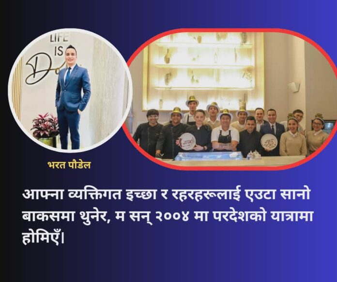 वर्तमान नेतृत्व ५० जनाको अभिभावकत्व आज म एउटा प्रतिष्ठित युके फ्रेन्चाइज कम्पनीमा ‘अप्रेसन म्यानेजर’ को रूपमा कार्यरत छु। यो पद केवल एउटा कुर्सी मात्र होइन, यो मेरो काँधमा भएका झन्डै ५० जना कर्मचारीहरूको भविष्य हो। आज म उनीहरूलाई निर्देशन दिँदा सधैँ नम्र हुन्छु, किनकि मलाई थाहा छ। हरेक कामदारको पछाडि एउटा परिवारको सपना हुन्छ। हिजो आफैँले काम खोज्दै भौँतारिएका यी हातहरूले आज अरूको घरमा चुलो बाल्ने अवसर प्रदान गरिरहेका छन्। यो भन्दा ठुलो आत्मसन्तुष्टि मेरो लागि अरू केही हुन सक्दैन। यो मेरो यो कथा ती लाखौँ नेपाली युवाहरूको प्रतिनिधि आवाज हो, जो आज सपनाको पोको पारेर परदेश पुगेका छन्। म उनीहरूलाई भन्न चाहन्छु। काम सानो वा ठुलो हुँदैन। यदि तपाईँमा दृढ इच्छाशक्ति छ भने, माल्दिभ्सको जुठो भाँडा माझ्ने ठाउँबाट सुरु भएको यात्रा कुवेतस्थित उके फ्रेंचैज एक चर्चित रेस्टुरेन्टको अप्रेसन म्यानेजरसम्म पुग्न सक्छ।