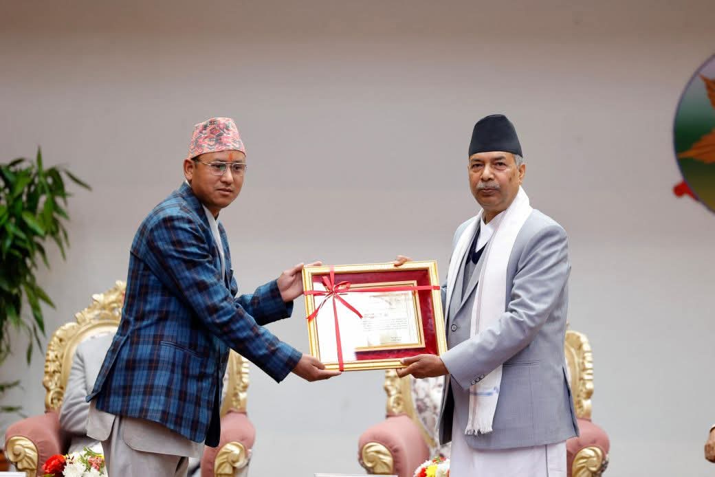 बुधबार नेपाल प्रहरी प्रधान कार्यालय काठमाडौंको नक्सालस्थित सभाहलमा आयोजित कार्यक्रममा राष्ट्रपति रामचन्द्र पौडेलको उपस्थितिमा र उपराष्ट्रपति  यादवले पत्रकारलाई सम्मानित गर्नुभयो ।