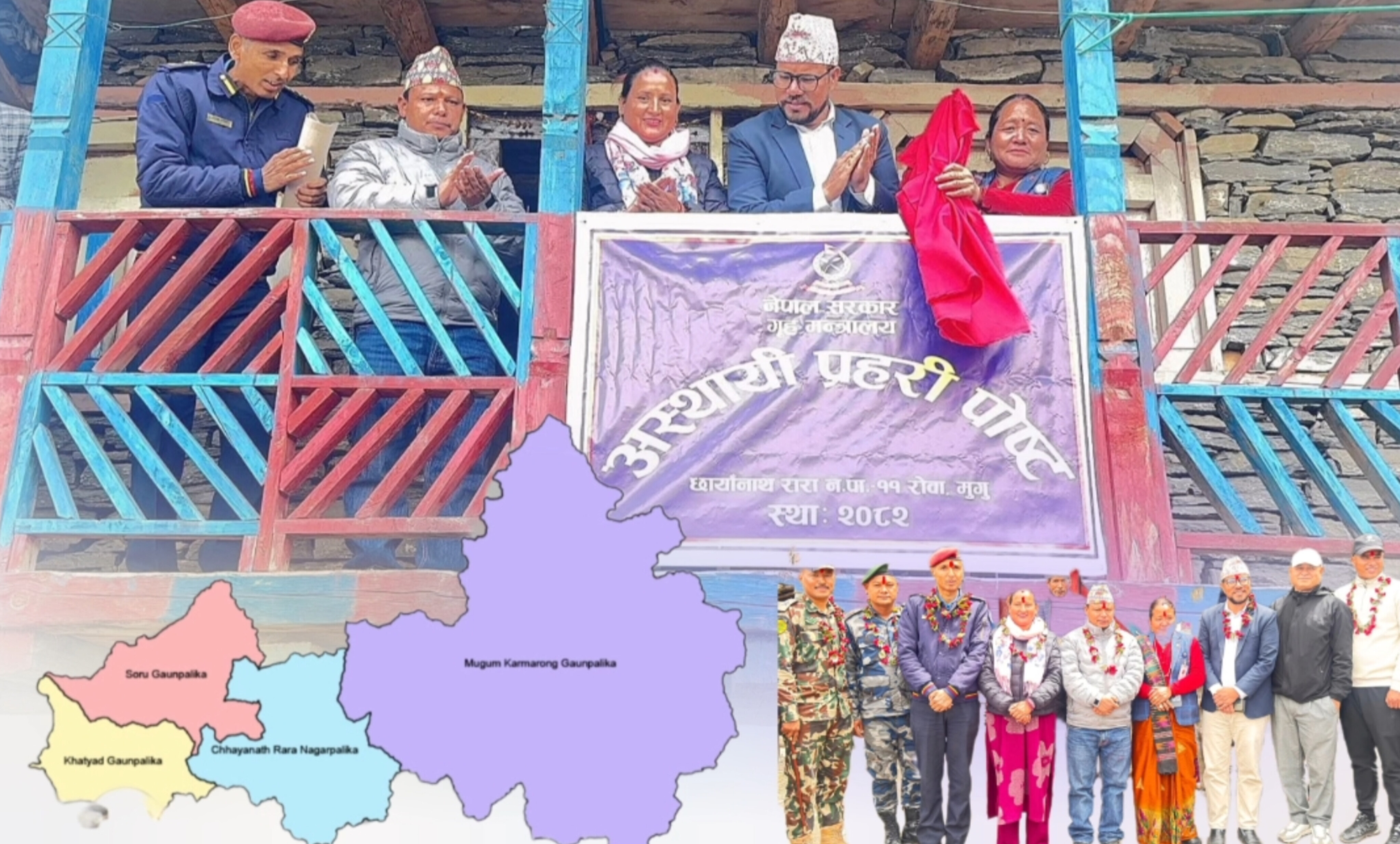 - मुगुको छायाँनाथ रारा नगरपालिका ११ रोबामा १० हजार बढी नागरिकलाई लक्षित गरी अस्थायी प्रहरी चौकी स्थापना गरिएको छ।