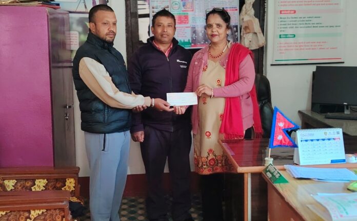संस्थाका प्रबन्धक सरस्वती आचार्य र कम्प्युटर अपरेटर प्रकाश महत्राले संयुक्त रूपमा उक्त चेक हस्तान्तरण गरेका हुन्।